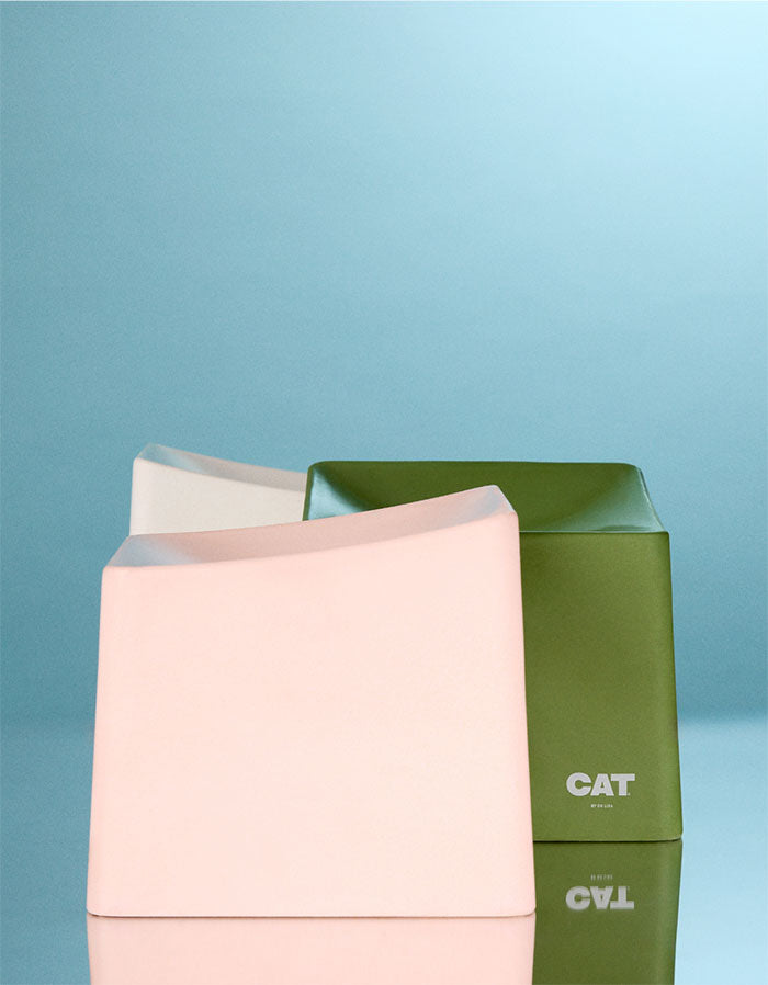 We know what you’re thinking, bowls are meant to be round. But what if they weren’t? What if they were *gasp* square? Designed to fit snuggly into the corner of a room, where they can’t get knocked over or stepped on? And what if they were raised, extra wide and shallow, so your cat can be more comfortable when drinking or eating? All while being 100% compostable. That’d be nuts, right?
